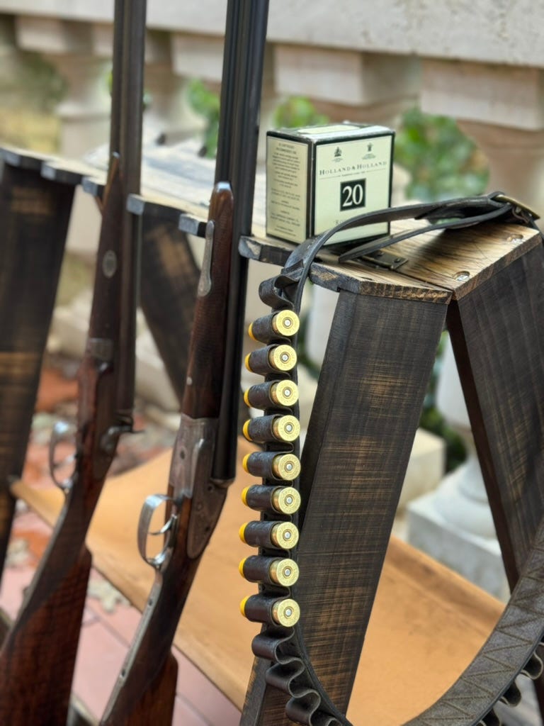 Most belts contain 25 loops for full box of shotgun shells to be carried around ones waist. Several companies are still making high quality belts by hand. A few of my favorites are Westley Richards, James Purdey and Sons, Holland and Holland and Els & Co., out of South Africa.